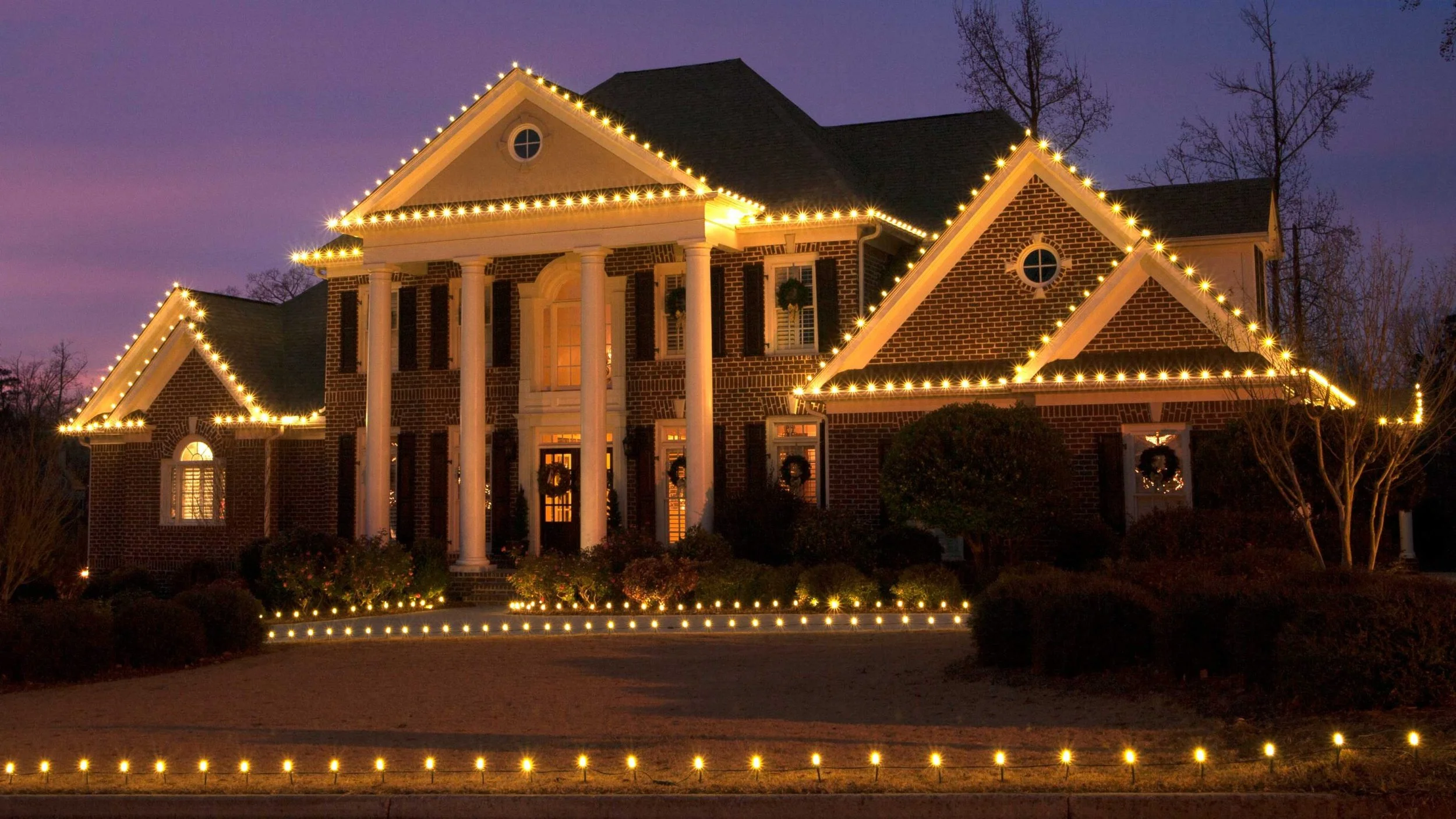 Our Basic Package covers your roofline with professional-grade C9 bulbs in warm white or color options. We custom-cut and fit each strand to your home’s exact measurements for a seamless finish — no visible wires, no gaps.